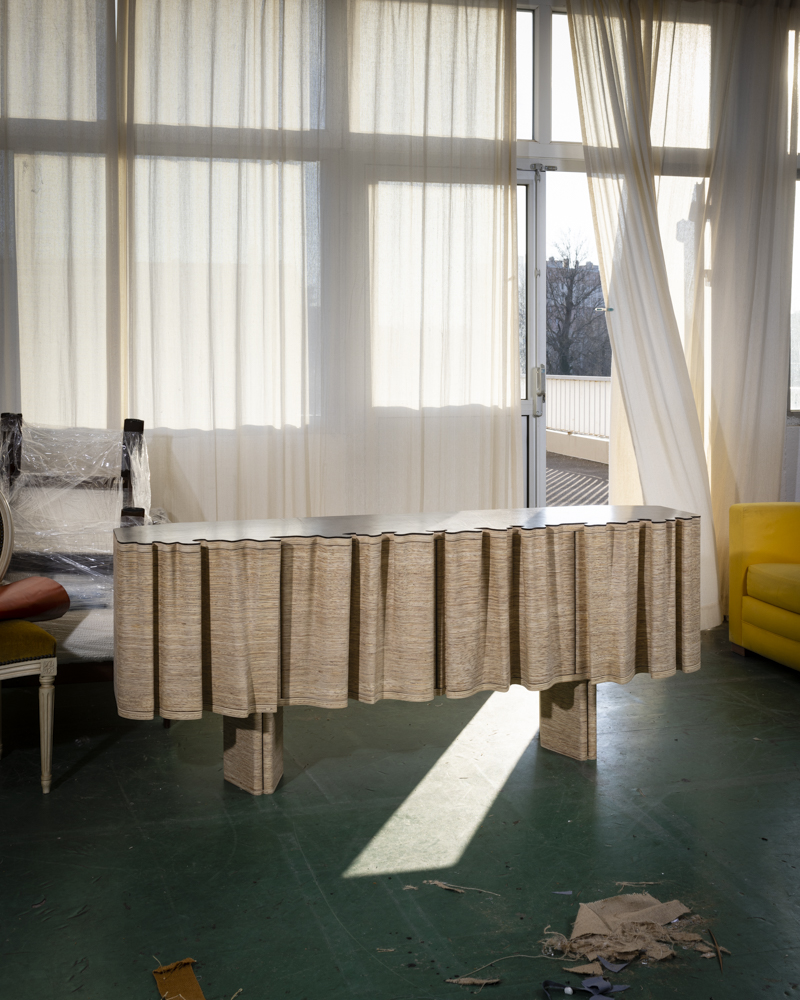 Le choix d’explorer le motif de la draperie découle d’une déclaration fondamentale : les technologies numériques — à la fois additives et soustractives—offrent un spectre formel élargi.