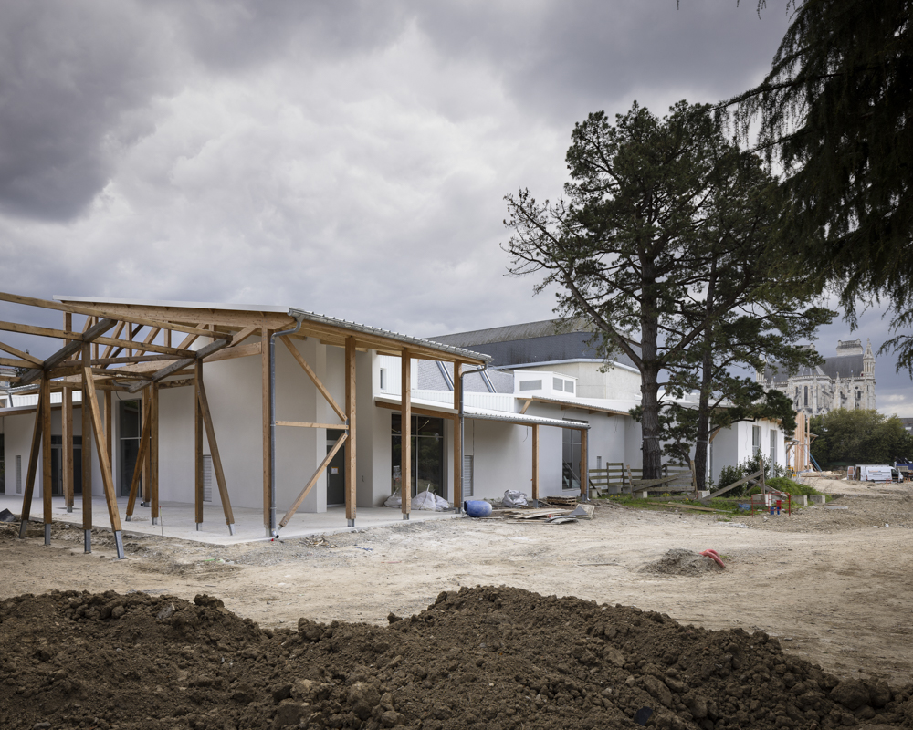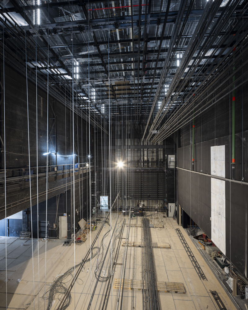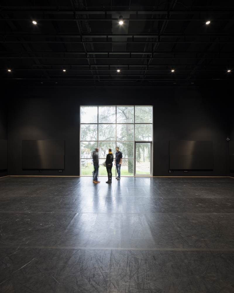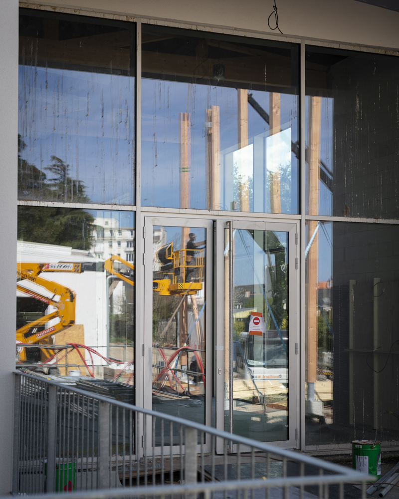 Photographies en fin de chantier de la réhabilitation d’une salle de 850 places, des bureaux, du restaurant de 150 couverts, d’une librairie, des loges. Construction d’une nouvelle salle polyvalente de 350 places, d’un studio de danse, de studios de musique. Reconfiguration d’un parc urbain de 2 ha en centre-ville.