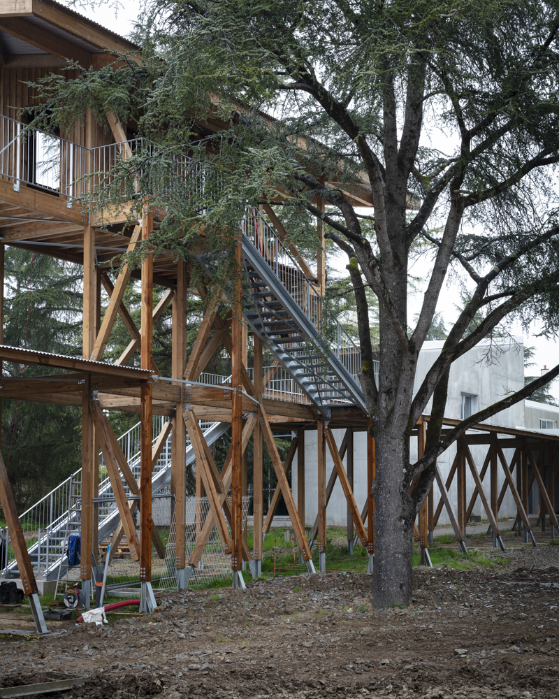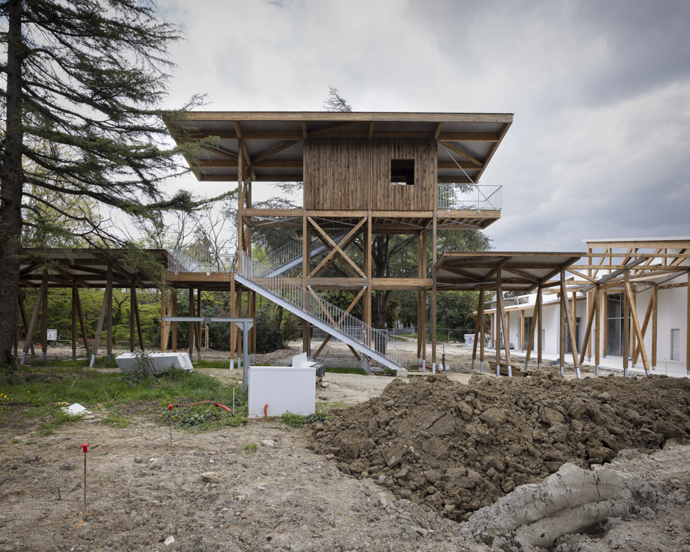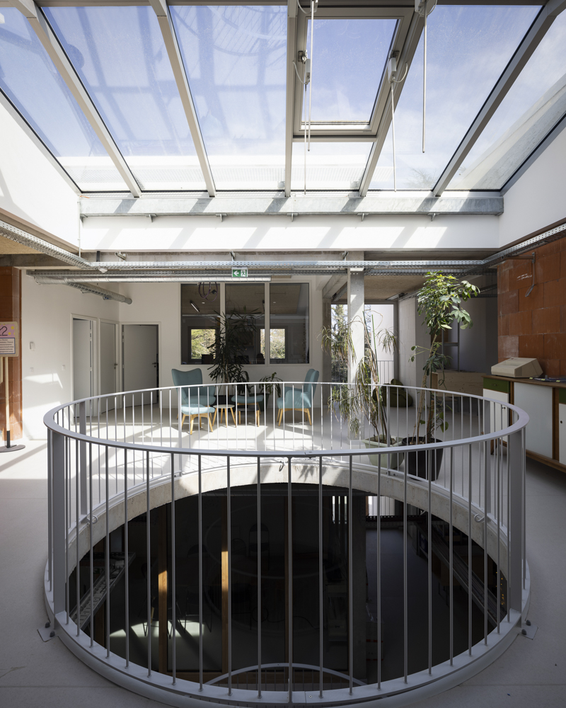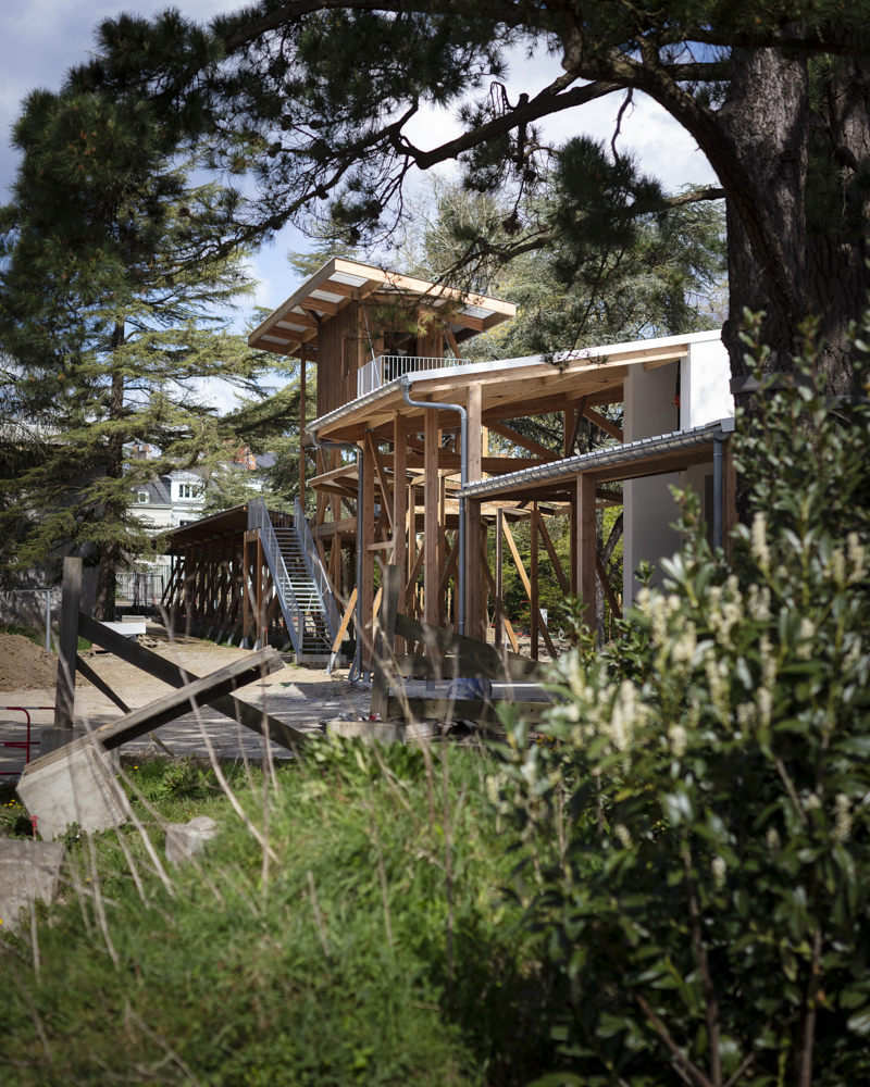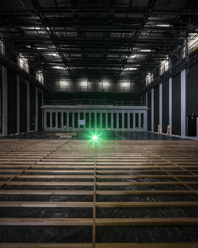 Photographies en fin de chantier de la réhabilitation d’une salle de 850 places, des bureaux, du restaurant de 150 couverts, d’une librairie, des loges. Construction d’une nouvelle salle polyvalente de 350 places, d’un studio de danse, de studios de musique. Reconfiguration d’un parc urbain de 2 ha en centre-ville.