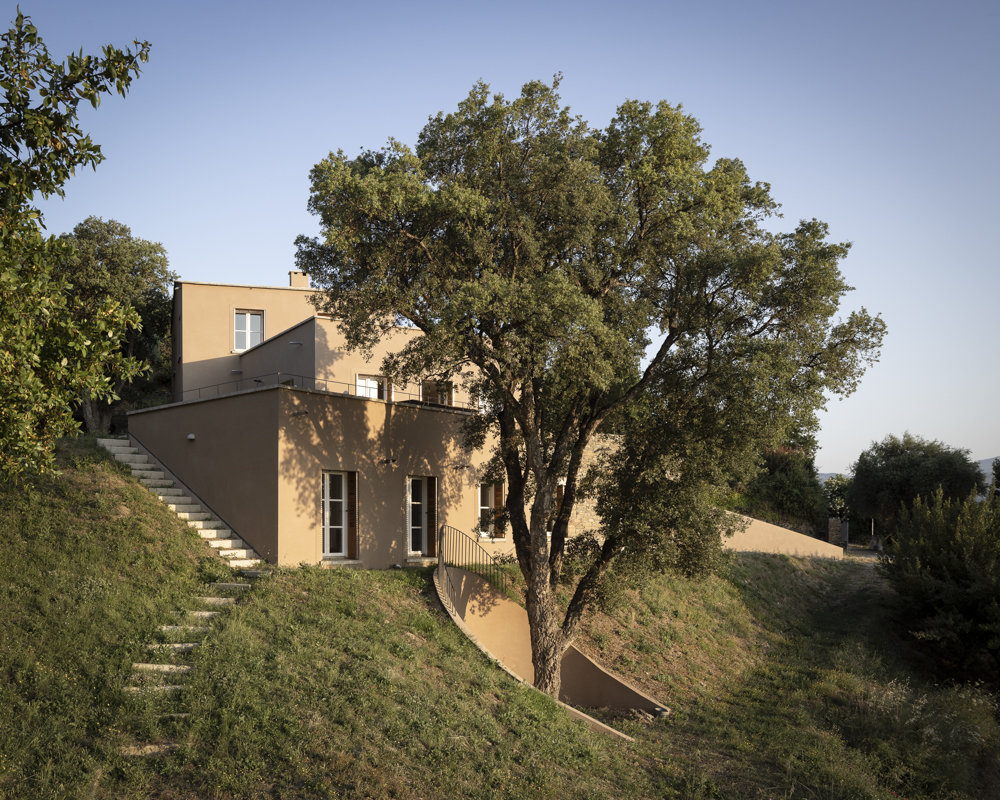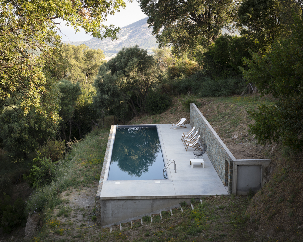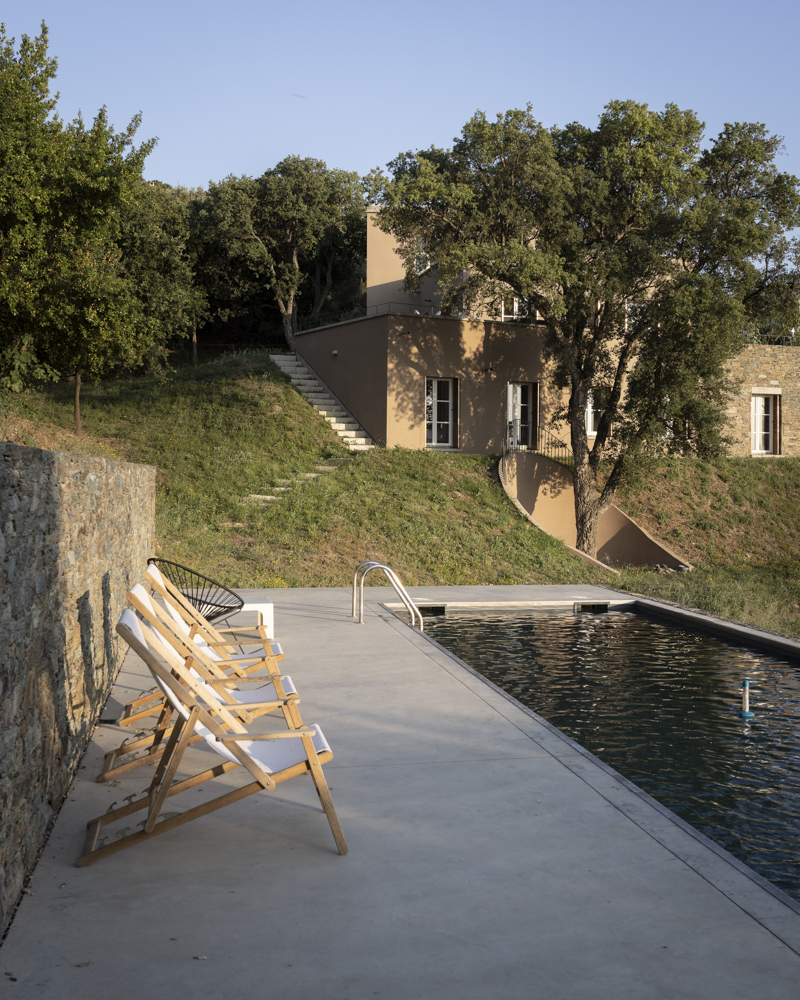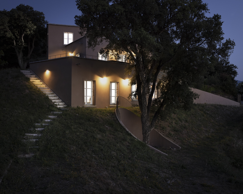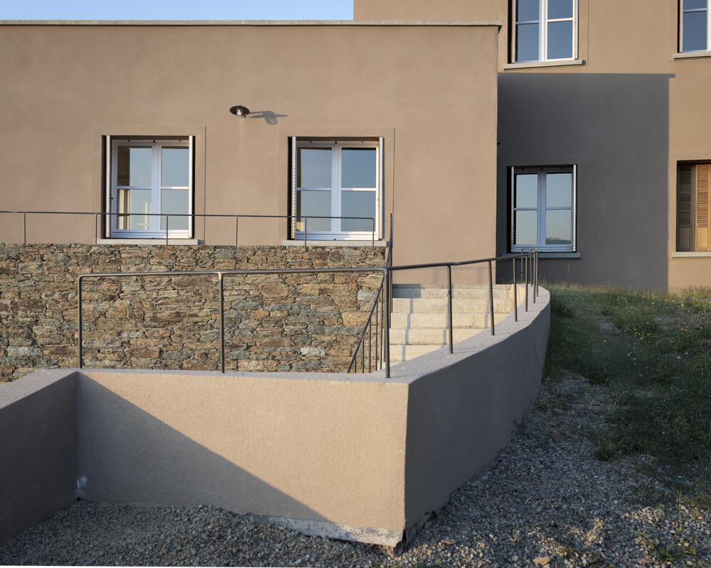 Associant une idée du luxe a une conception rustique elle est implantée dans un paysage exceptionnel. Les matériaux mis en œuvre garantissent une atmosphère tempérée et confortable: brique en double paroi, bois massif, béton brut, enduits à la chaux,… Le programme se développe avec une simplicité sereine pour accueillir avec une convivialité généreuse.